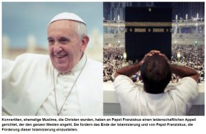 (Rom) Eine Gruppe von Konvertiten, die sich vom Islam zum katholischen Glauben bekehrt haben, haben einen dramatischen Appell an Papst Franziskus gerichtet. Sie kritisieren eine „naive und gefährliche Haltung“ gegenüber dem Islam. Sie fordern ein Ende der Islamisierung des Westens und von Papst Franziskus, daß er die Förderung dieser Islamisierung beenden solle. Die Sache sei sehr ernst, denn es gehe „um eine Frage von Leben und Tod“.