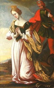 Margareta – in der Ostkirche ist Marina der gebräuchliche Name – ist eine legendäre Märtyrerin. Sie soll die Tochter eines heidnischen Priesters gewesen sein. Die christliche Amme erzog sie demnach zum Glauben; der Vater verstieß seine Tochter, als er dies bemerkte und denunzierte sie beim Stadtpräfekten. Sie floh, wurde aber gefunden und vor Gericht gestellt; die Richter begehrten die hübsche Angeklagte, wurden aber von ihr abgewiesen und rächte sich umso grausamer. Margareta wurde mit Fackeln angesengt und in siedendem Öl gekocht, aber sie blieb unverletzt. Das Volk war von diesen Wundern dermaßen beeindruckt, dass die Menschen sich offen zum Christengott bekannten – dafür aber gleich enthauptet wurden wie schließlich auch Margareta.