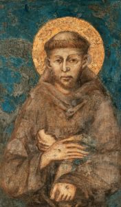 In Franz von Assisi ist, wie der hl. Bonaventura schreibt, die Güte Gottes, unseres Erlösers, auf Erden sichtbar geworden. Freilich, ein sanfter Heiliger war Franz nicht. Nachdem er, der in Wohlstand aufgewachsen war, mit fünfundzwanzig Jahren den Ruf gehört hatte, Jesus in Armut nachzufolgen, gab es für ihn nur den Weg einer radikalen Armut. Halbe Lösungen waren ihm verhasst. Den Brüdern, die sich ihm seit 1209 anschlossen, wollte er keine andere Regel geben als das Evangelium mit seiner Aufforderung zur Armut und Kreuzesnachfolge (Mt 19, 21; Lk 9, 1-6; Mt 16, 24). Mit der Liebe zur Armut verband sich bei ihm die Liebe zu den Armen und Kranken, in denen er Christus sah. Er selbst wollte ganz Christus ähnlich werden in der Armut, in der Liebe, in der Predigttätigkeit, im Leiden. Gegen Ende seines Lebens empfing er in der Einsamkeit der Berge von La Verna die Wundmale Jesu und wurde so dem Gekreuzigten noch ähnlicher. In den Schmerzen seiner letzten Krankheit wollte er nur den Willen Gottes erfüllen, bis sein „Bruder, der Tod“, dem Leiden ein Ende machte am 3. Oktober 1226.