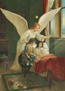 Der Glaube an Engel, d. h. mächtige Geistwesen, die in der Welt Gottes und der Menschen eine Rolle spielen, wird schon in der Heiligen Schrift ausgesprochen, wenn auch nicht eigentlich geklärt. Im Alten Testament ist der „Engel Gottes“ (Engel Jahwes) der hilfreiche Bote Gottes (Gen 16, 7; 21, 17; Ex 14, 19; 2 Kön 19, 35). In späteren Schriften (z. B. Daniel) finden wir Namen von Engeln, denen bestimmte Aufgaben zugewiesen sind. Im Neuen Testament spielen die Engel eine Rolle im Leben Jesu und der Urkirche. Es gibt dämonische, satanische Mächte, und es gibt auch die guten Engel, die den Menschen helfen, sie führen und beschützen. Der Glaube an die Schutzengel stützt sich vor allem auf Mt 18, 10. – Die liturgische Verehrung der Schutzengel hat sich vor allem im 15. und 16. Jahrhundert verbreitet, zunächst in Verbindung mit dem Fest des Erzengels Michael (29. September); 1670 hat Papst Klemens X. das Schutzengelfest für die ganze Kirche vorgeschrieben und auf den 2. Oktober festgelegt.